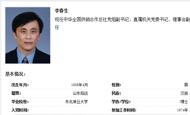 2014.08-中华全国供销合作总社党组副书记、直属机关党委书记、理事会副主任。