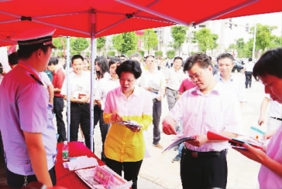 (6月16日,全省安全生产宣传咨询日活动在岳麓区举行。图为省市领导走进咨询展示区,了解安全知识咨询开展情况。(本文图片由通讯员提供))