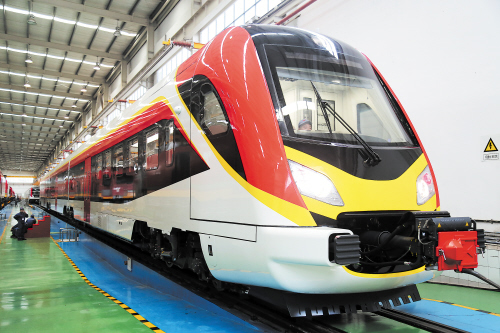 ( 中国首列出口欧洲的动车组昨在中国中车旗下株洲电力机车有限公司下线。长沙晚报通讯员 刘天胜 摄)