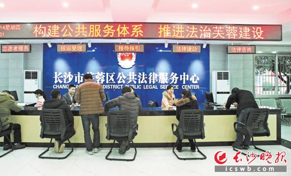 2016年1月14日,在芙蓉区公共法律服务中心,几位市民正在办理业务。 长沙市法律援助处供图
