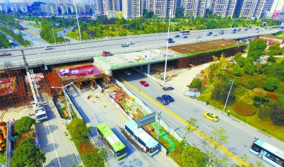 11月3日,长沙金星路西二环路段,机动车辆从西二环正在加宽施工的桥梁下穿过。为确保西二环交通改善工程顺利施工,交警部门在施工期间进行交通管制,从当天零时起至2017年4月2日24时止,对金星路主线西二环路段限高3.8米,金星路辅道西二环路段限高2.7米,禁止超高机动车由西往东通行。湖南日报记者 田超 摄