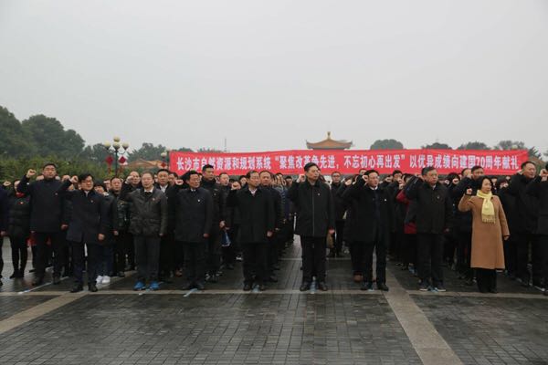 当天,自然资源和规划局班子成员、机关全体干部、局属单位副科级以上干部共计400名骨干齐聚橘子洲头毛主席像前,在局党委书记陈晓阳的带领下郑重宣誓,誓以党员的标准和要求、以军人的担当和作风,继续发扬革命优良传统,坚决做到“两个维护”,以战无不胜的铁军精神助力长沙追赶超越、转型发展。