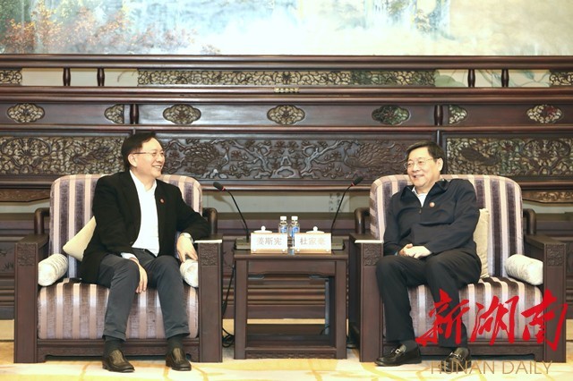1月2日晚上,省委书记杜家毫在长沙与上海交通大学党委书记姜斯宪一行座谈。
