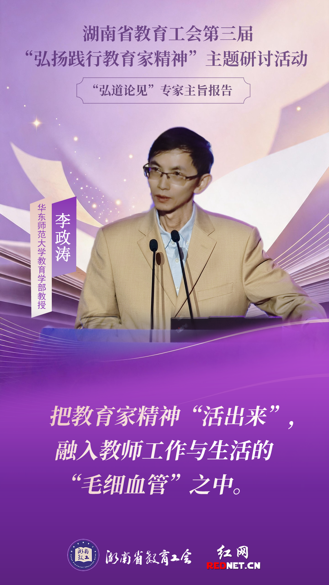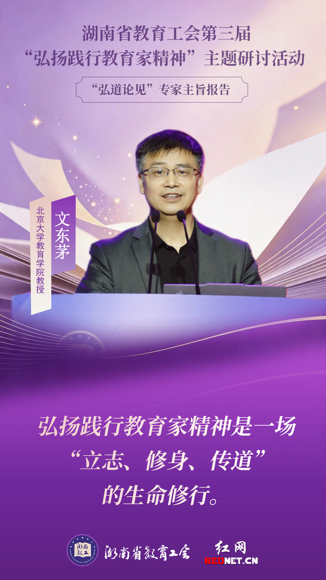 什么是教育家精神?4月24日,由湖南省教育工会主办、湖南师范大学承办的第三届“弘扬践行教育家精神”主题研讨活动在湖南师范大学附属中学举行。3位全国知名教育专家与2名省内一线优秀教师代表莅临现场进行分享,给出了关于“教育家精神”动人的时代注解。