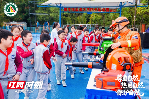 活动现场内容丰富多彩、形式生动多元。学生与家长共同宣读《森林草原防火倡议书》,铿锵有力,唤起全场对“守护绿色家园”的深切共鸣。来自博才梅溪湖小学的学生们带来快板表演《防火小卫士 绿岭欢歌谣》,以朗朗上口的节奏普及防火知识;岳阳市巴陵戏传承研究院带来的情景剧《青山有约》深情呈现生态护林员日复一日护绿故事,感人至深;来自湖南师范大学梅溪湖中学的学生们则以朗诵《森林防火青年说》,展现了新时代青少年对生态文明的责任与担当。