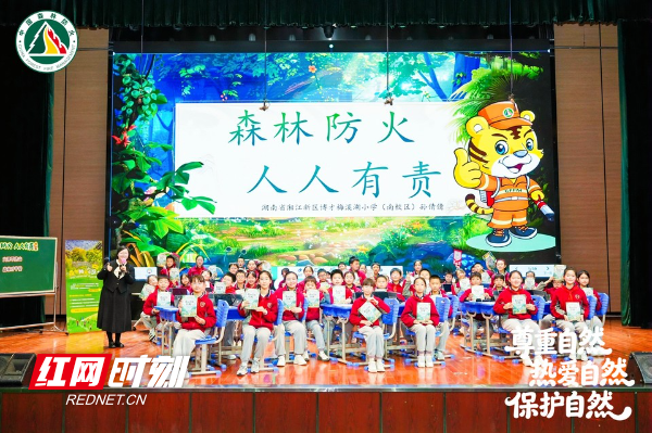 红网时刻新闻11月12日讯(记者 李璐 通讯员 郭尧 实习生 曾庆果 张君伊)“我知道!森林防火的报警电话是12119!”“进山不带火,带火不进山!”11月12日,全国中小学生森林草原防火宣传教育暨全国三亿青少年进森林研学教育活动在长沙举办。